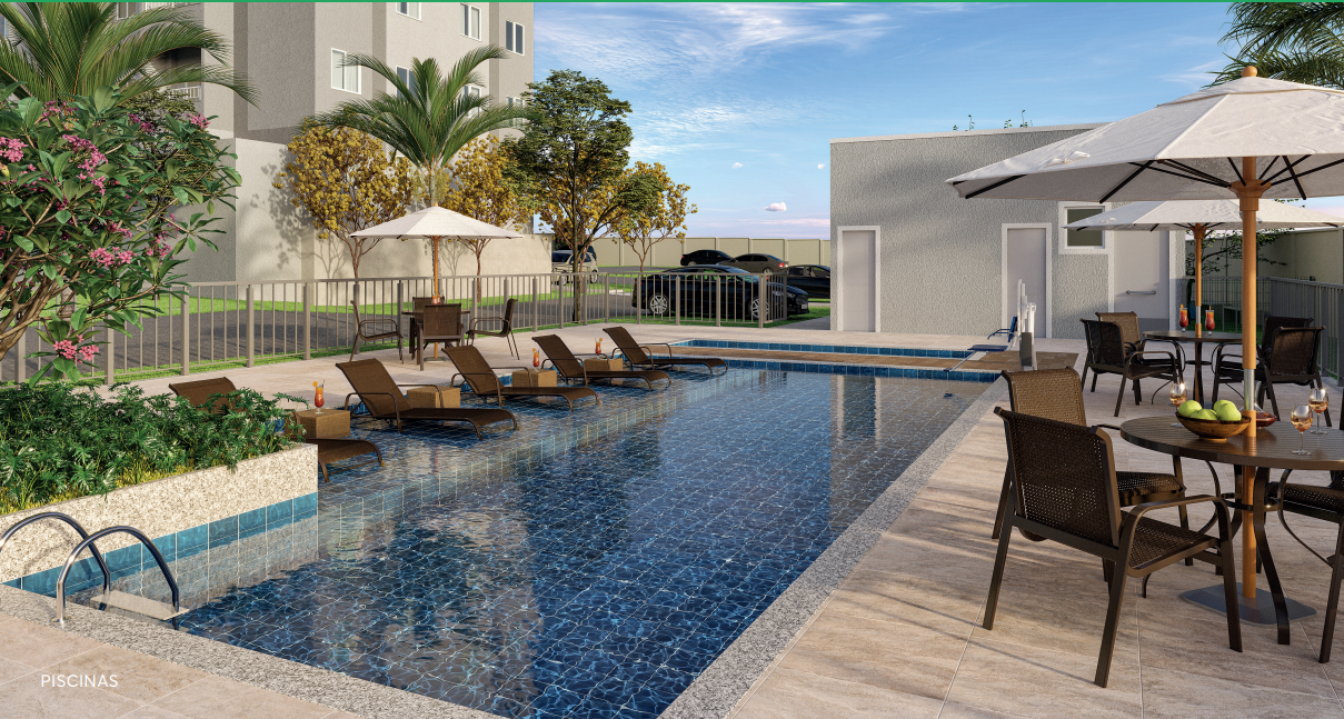 Venha morar com a segurança de um condomínio fechado em apartamentos de 2 dormitórios com opção de varanda, lazer completo com piscinas adulto e infantil, espaço gourmet, salão de festas e muita praticidade para o seu dia a dia com 3 elevadores em cada torre.